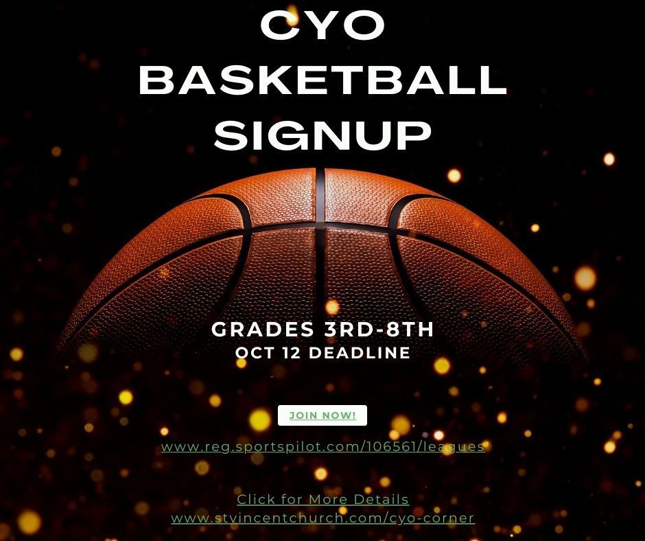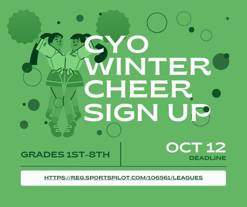 CYO Basketball and Cheerleading registration is now open and will close on October 12th.