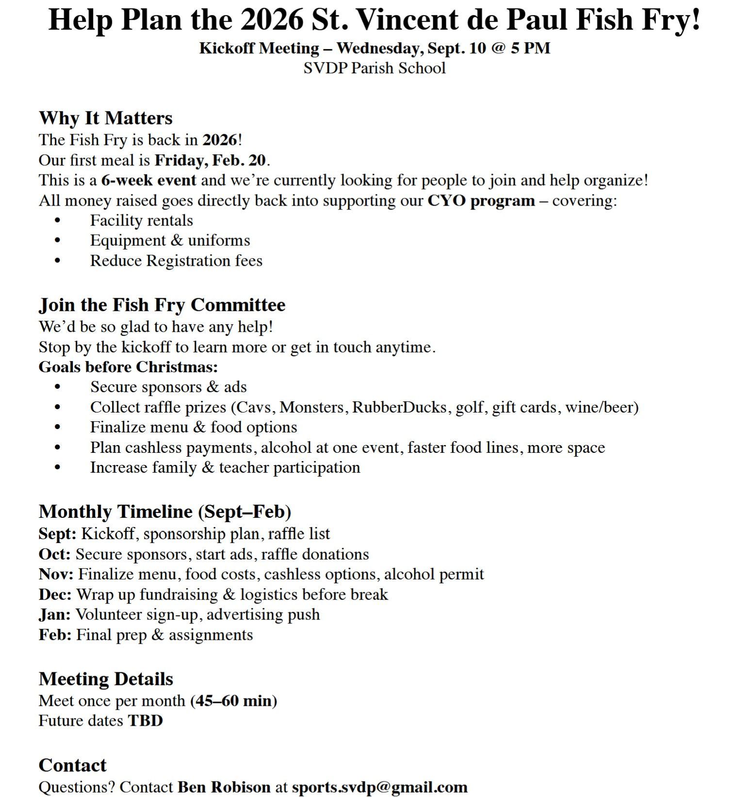 We are looking for a Winter Site Director for our gym so we can host basketball games this season. If anyone is interested, please have them reach out to me at sports.svdp@gmail.com.